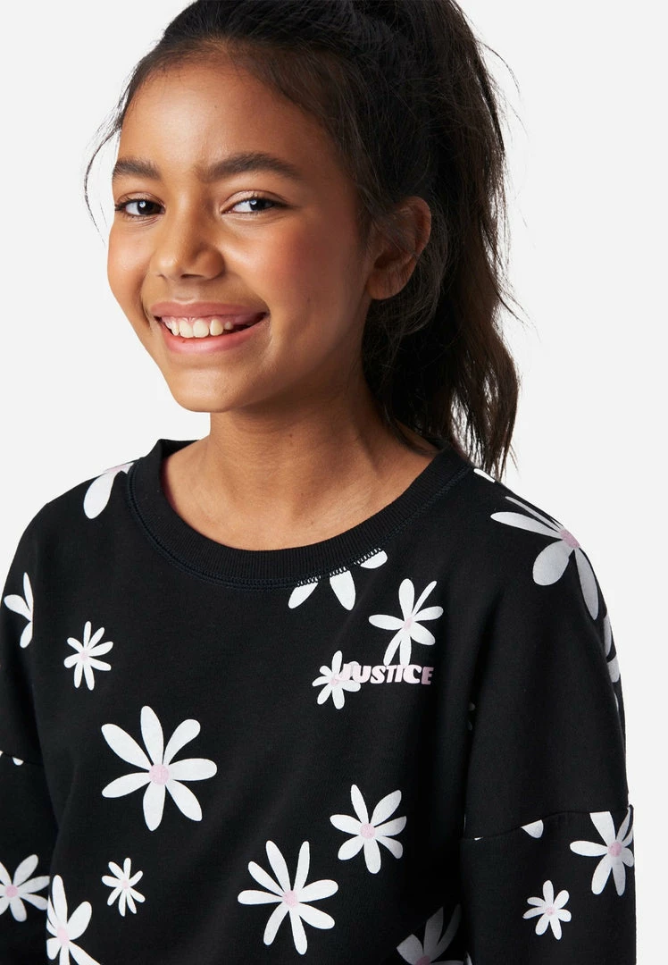 A standout pattern highlights our girls’ sweatshirts. The crew neckline and long sleeves, plus the banded cuffs and hemline bring classic style. The pullover design makes it easy to layer. And soft, cotton-blend fabric promises comfortable wear. They’re a perfect match for Justice Denim jeans.