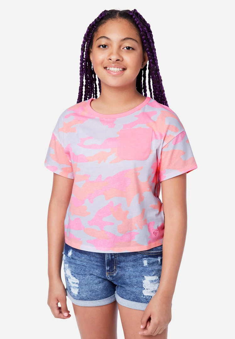 A crew neckline offers classic style to our girls’ short-sleeve tees. Bias binding finishes the neckline. A color-block pocket square and embroidered Justice logo highlight the front. And the soft cotton-blend fabric promises daylong comfort. Plus, they’re available in an array of easy-to-pair hues and patterns that are perfect for mixing and matching with shorts, skirts, and other essentials in our Everyday Faves collection—which offers tons of value and is perfect for a girl who’s just discovering her own, unique personal style.