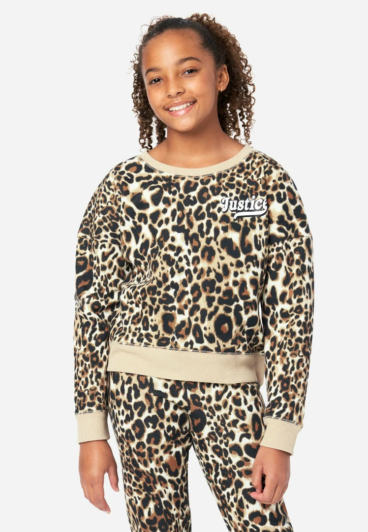 Cotton-blend fleece fabric gives our girls’ sweatshirts a cozy finish. Color blocking highlights the crew neckline, banded cuffs, and cropped hemline. An allover pattern offers standout style. And a graphic punctuates the front. She can style them easy-to-pair pieces from our Everyday Faves collection—which offers tons of value and is perfect for a girl who’s just discovering her own, unique personal style.