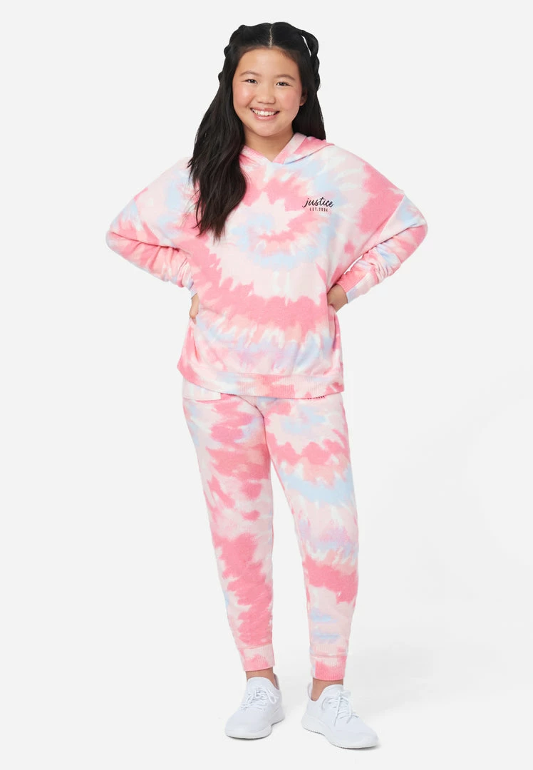 Knit hacci fabric gives our girls’ joggers a supersoft, cozy feel. The pattern adds the right amount of standout style. They have an elastic drawstring waistband for easy on-and-off convenience. Two side slip pockets are perfect for tucking away small items. A small Justice logo graphic punctuates one side. And classic banded cuffs promise a comfortable, stay-in-place fit. She can pair them with her favorite tees or hoodies for an effortless go-to outfit.