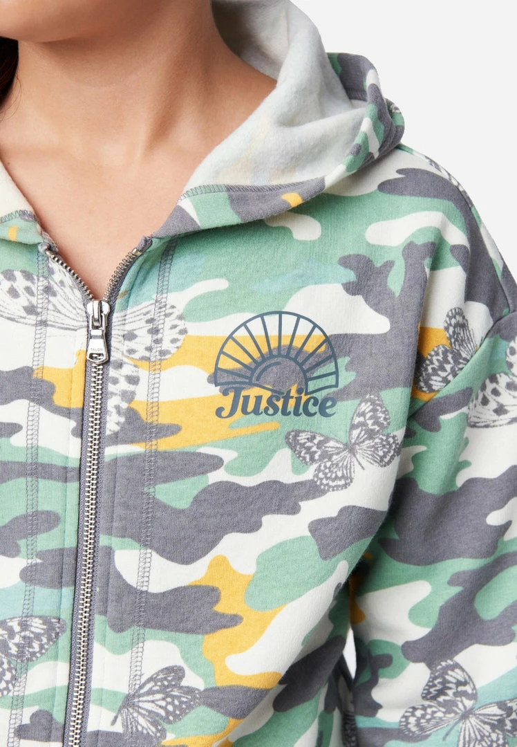 A retro-inspired pattern gives our girls’ hoodies trend-right style. They zip up and have two slip pockets. A hood adds an element of coziness. The cotton-blend fabric is supersoft. And a graphic punctuates the front. She can pair them with matching shorts for an easy-to-style outfit.