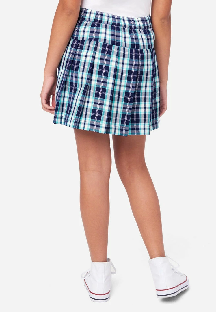 Let your girl embrace her free spirit in our girls’ plaid wrap pleaded skirt. She’ll love the supersoft woven material blend—which promises daylong comfort. It’s designed with a woven label at the hem and built in shorts. The colorful plaids will highlights her style.