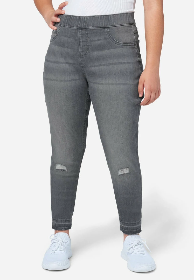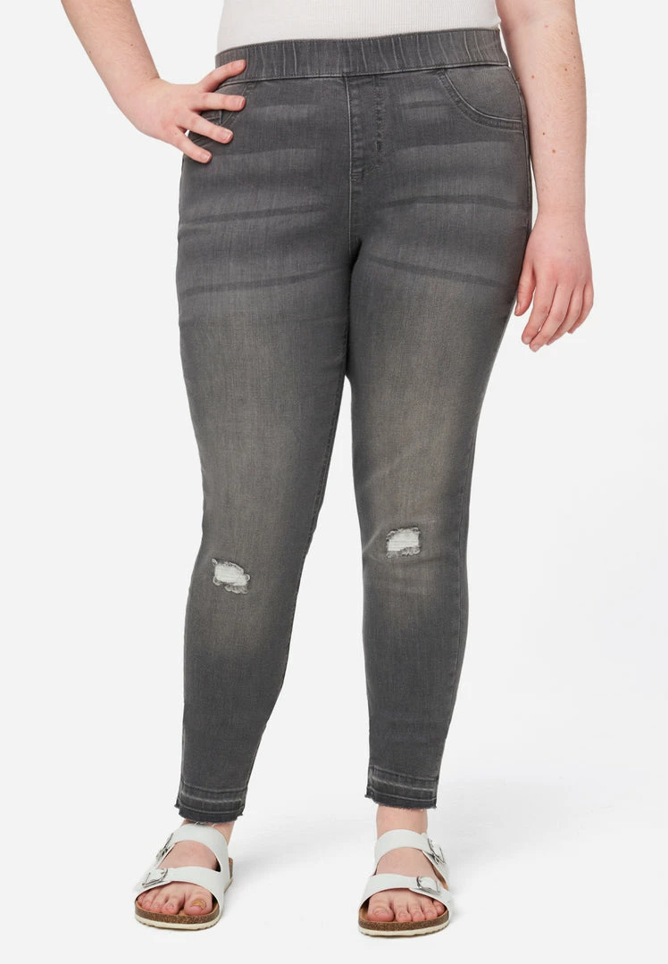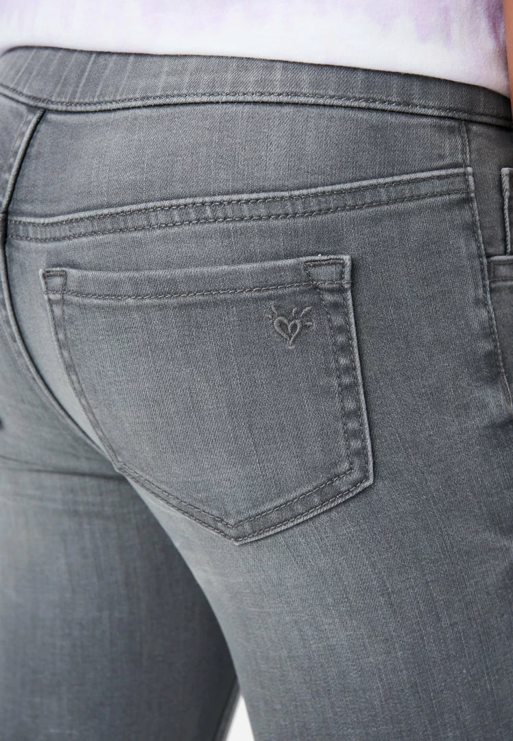 Our woven girls’ jean leggings have a stretchy, contour pull-on waistband—that keeps up with all her movement. Rise in the back prevents gapping. Destructed details with backing promise modesty with edge. The legging-like fit and mid-rise offer classic style. The deconstructed hems bring on-trend flair. And welted seams make them super-durable. They’re perfect for pairing with her favorite tees and sweatshirts. Plus, the comfy, stretch-cotton fabric is made with Repreve® denim—which is created using recycled materials. This means not only will your girl look good while wearing her fashion, but she’ll feel good about her fashion, too.