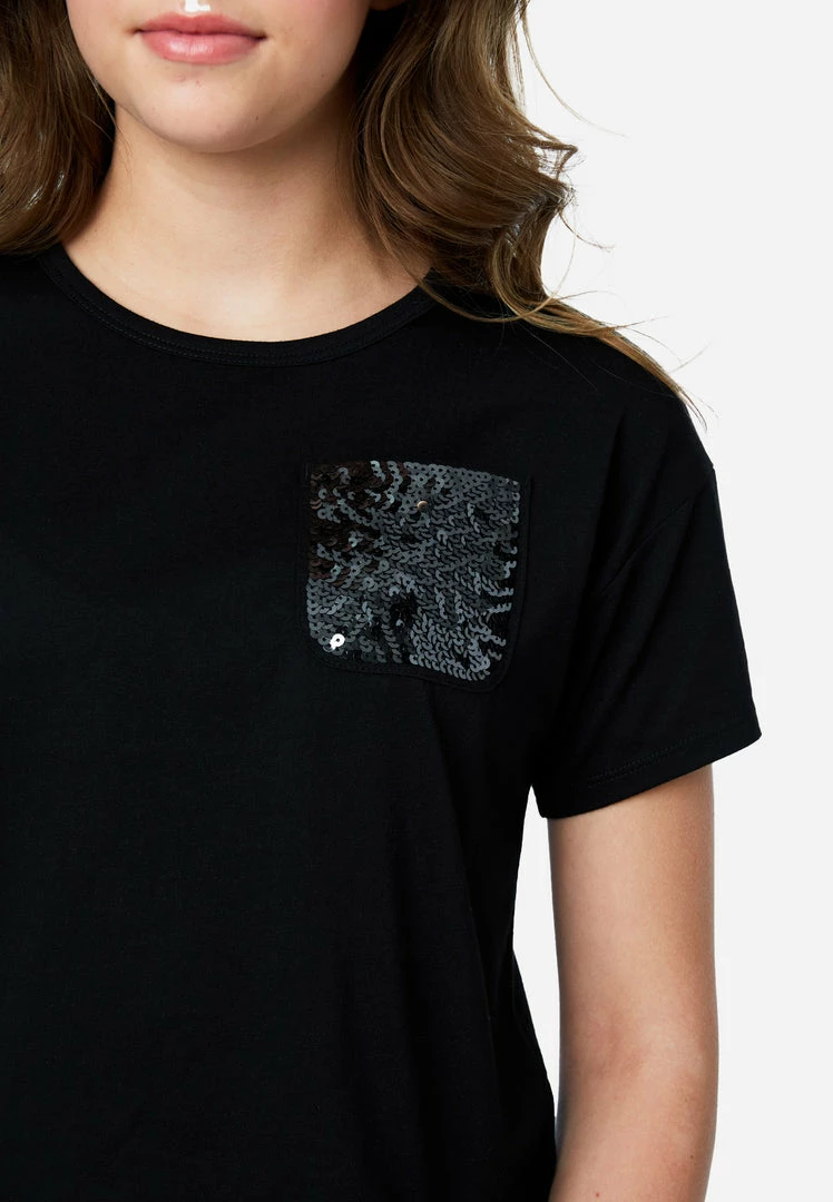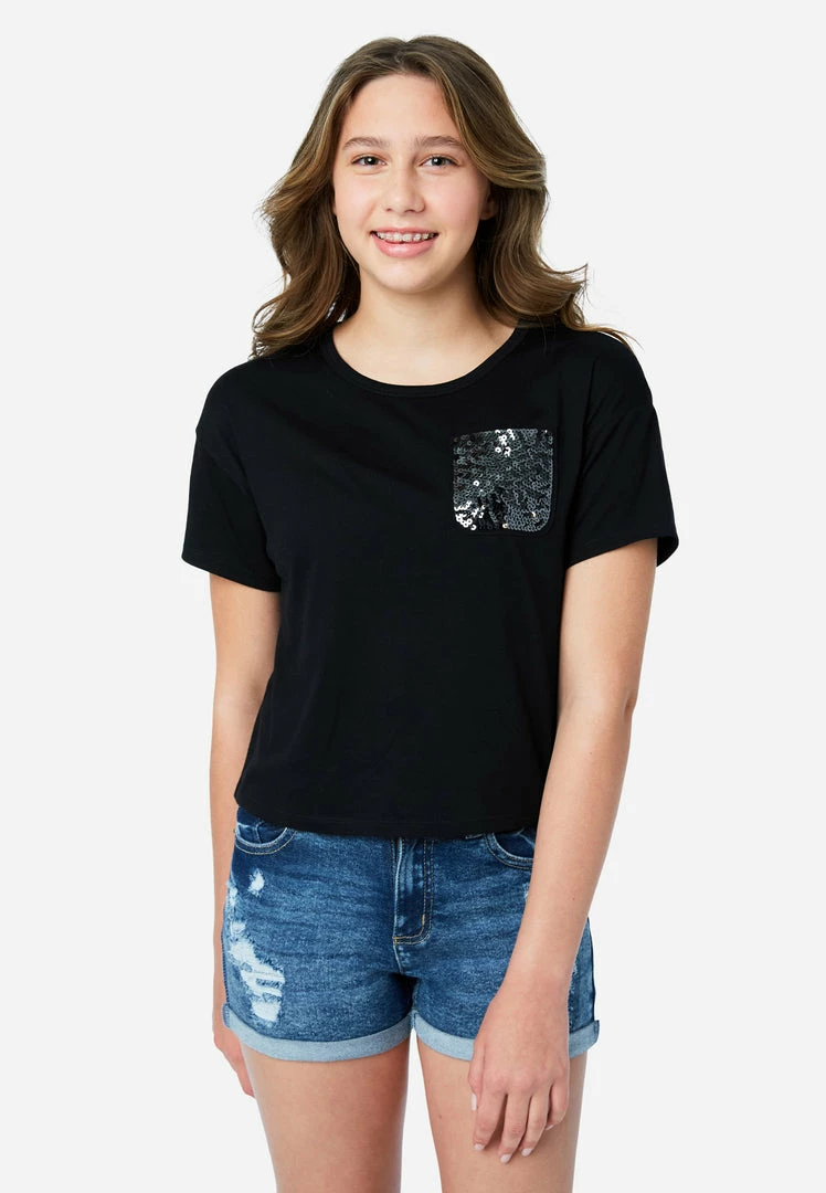 Bias binding finishes the crew neckline on our girls’ short-sleeve tees. A sequin, color-block pocket square, and embroidered Justice logo highlight the front. And the cotton-blend jersey fabric promises daylong comfort. Plus, they’re available in an array of easy-to-pair hues that are perfect for mixing and matching with shorts, skirts, and other essentials in our Everyday Faves collection—which offers tons of value and is perfect for a girl who’s just discovering her own, unique personal style.