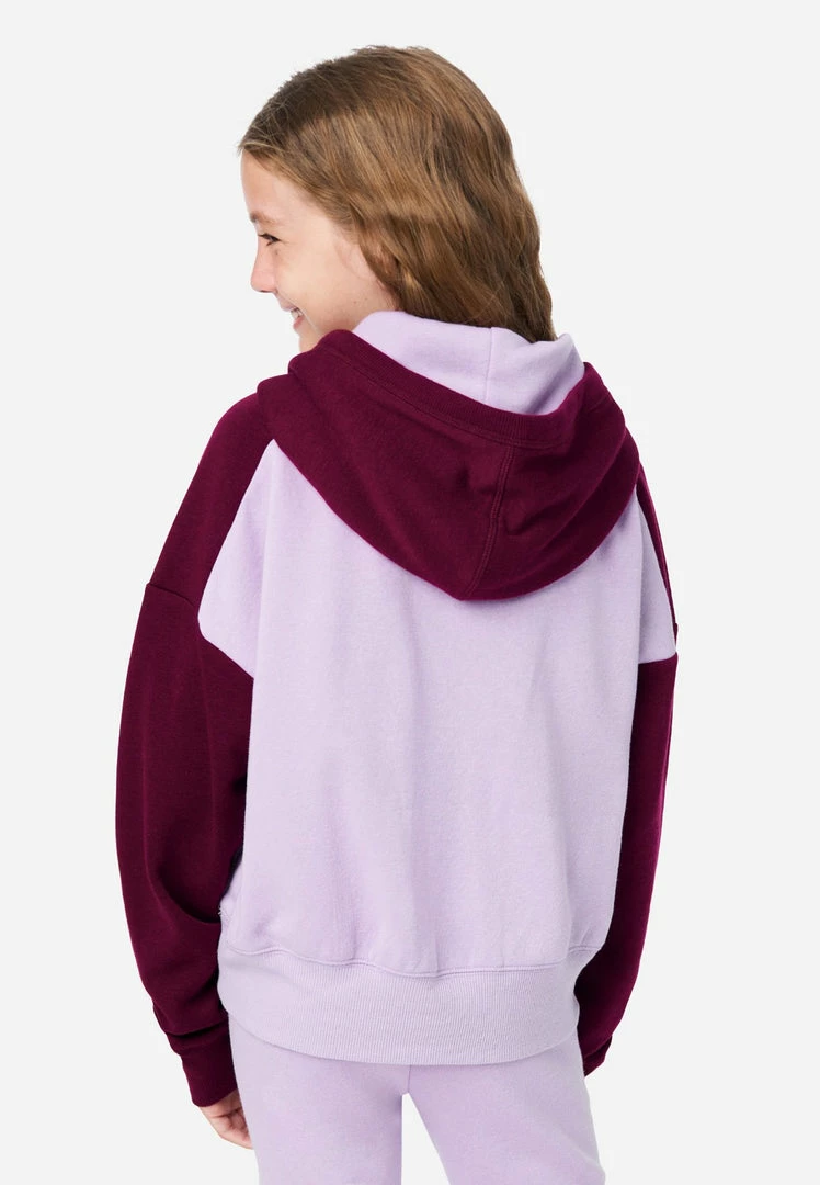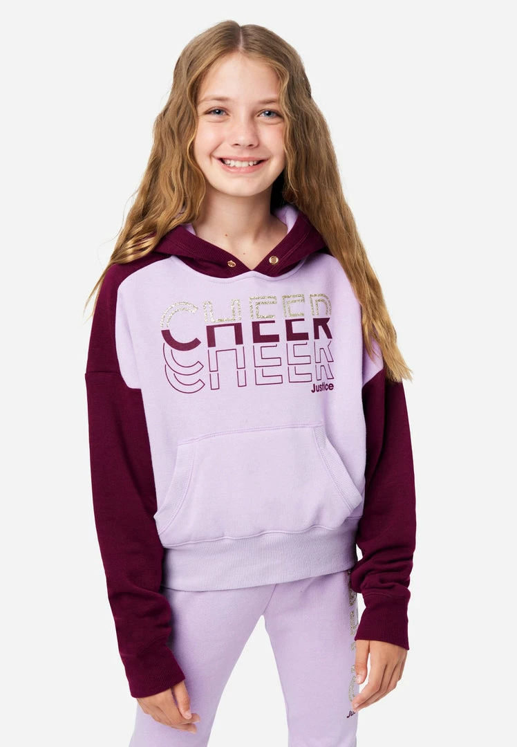 Your all-star will love our girls’ hoodies that feature bold sports graphics on the front. Cotton-blend fabric gives them a cozy finish. Color-blocking highlights the hood and dropped sleeves. A kangaroo pocket makes it extra-cozy. The pullover design promises easy layering. Plus, she can rep her sport by pairing her hoodie with a matching tee and joggers.