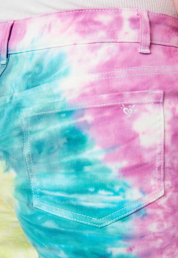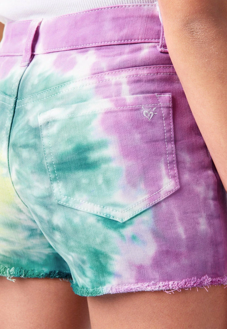As the weather heats up, so will your girl’s style. And our girls’ mini mom shorts are crafted from soft, stretchy denim that will keep her comfy. The high-rise cut makes it a cinch to ease into the vintage feel of this distressed pair. They are designed with a zip-and-button fly, 5-pocket tailoring, and belt loops that keep them classic. The tie-dye design and frayed cuffs offer on-trend appeal. Plus, the denim is made using recycled materials. Which means not only will your girl look good, but she’ll feel good about showing Mother Nature some love, too.