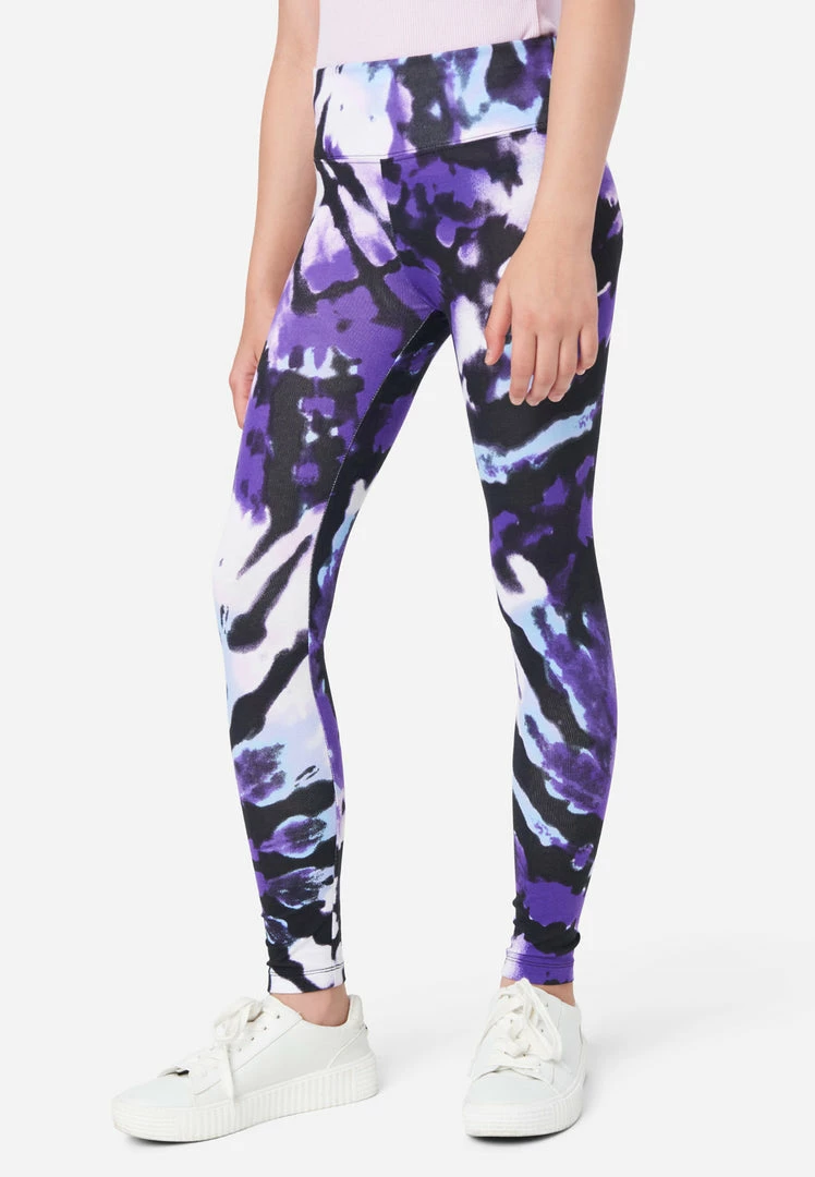 We designed our girls’ leggings with a wide waistband and stretch cotton-blend fabric that’s super-comfy and follows her every movement. They sport a playful tie-dye pattern that is perfect for mixing and matching with tees in our Everyday Faves collection—which offers tons of value and is perfect for a girl who’s just discovering her own, unique personal style. Plus, they’re made with recycled materials. This means not only will your girl look good while wearing her fashion, but she’ll feel good about her fashion, too.