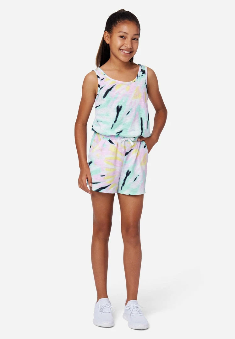Perfect to lounge in or head out for the day, our girls’ romper is crafted in supersoft cotton jersey that will keep your girl cool and comfortable no matter what’s on her schedule. And the bold tie-dye design lends standout appeal.