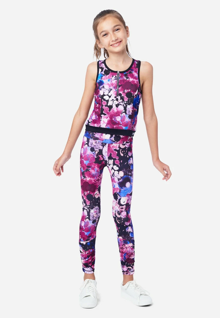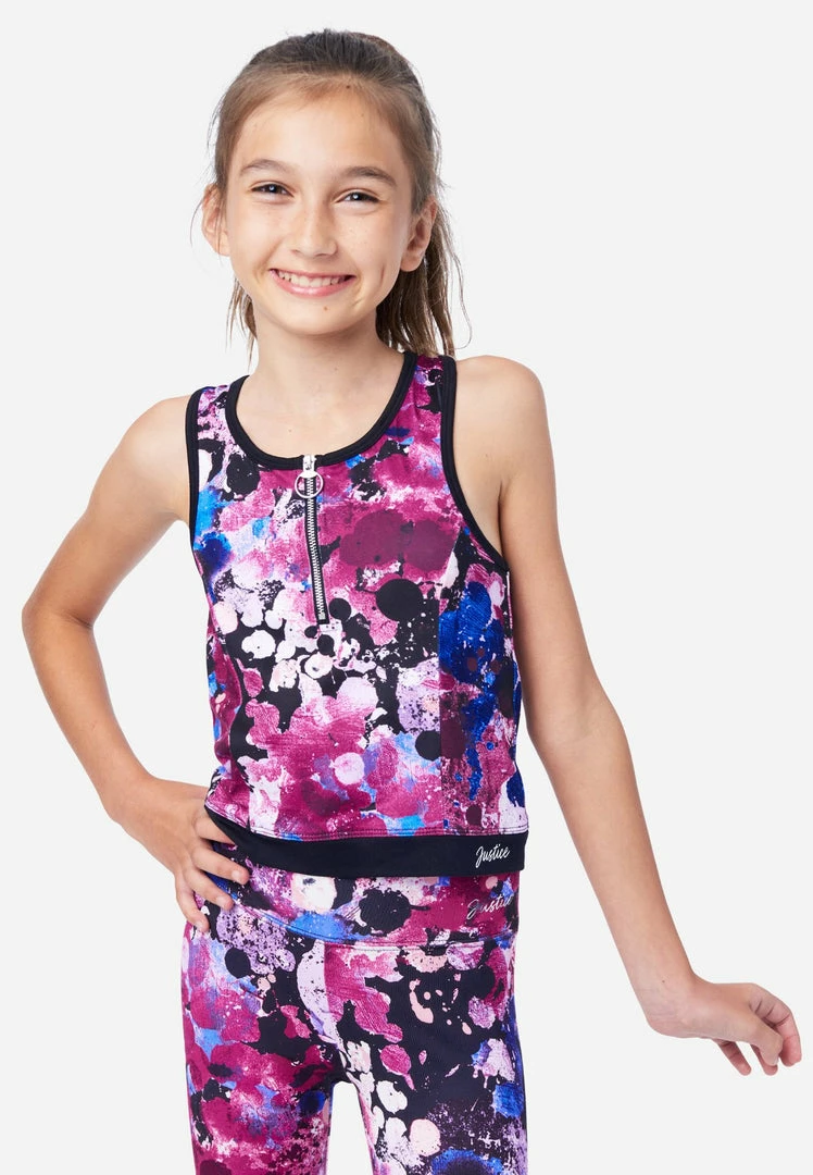 Our sporty girl’s tank top is perfect for when your girl splits her time between school and play. This patterned style features a scoop neckline with a half-zip closure—that’s finished with a metallic ring—for easy on-and-off convenience. The logo-banded waistline will stay in place no matter how she layers it. Plus, it’s a perfect match for leggings and other pieces in this capsule collection.