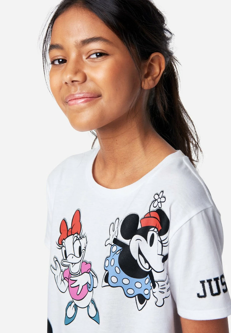 The Justice X Disney® collab has looks with timeless graphics and on-trend designs your girl will love. Our girls’ short-sleeve tees sport a classic scoop neckline. A graphic on the front reps her Disney® faves. Soft cotton-blend fabric and a relaxed-cut promise breezy comfort. Effortlessly pair them with matching shorts or leggings from our Disney® collection.