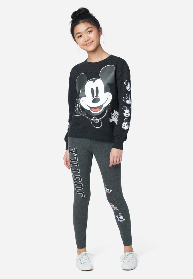 The Justice X Disney® collab has looks with timeless graphics and on-trend designs your girl will love. Our girls’ sweatshirts sport a classic crew neckline and long sleeves with a banded hemline and cuffs. The pullover design promises easy layering. A graphic on the front reps her Disney® faves. And the soft cotton-blend fabric promises day-long comfort. Effortlessly pair them with matching tees and leggings from our Disney® collection.