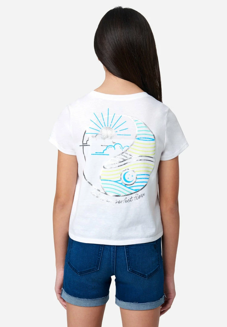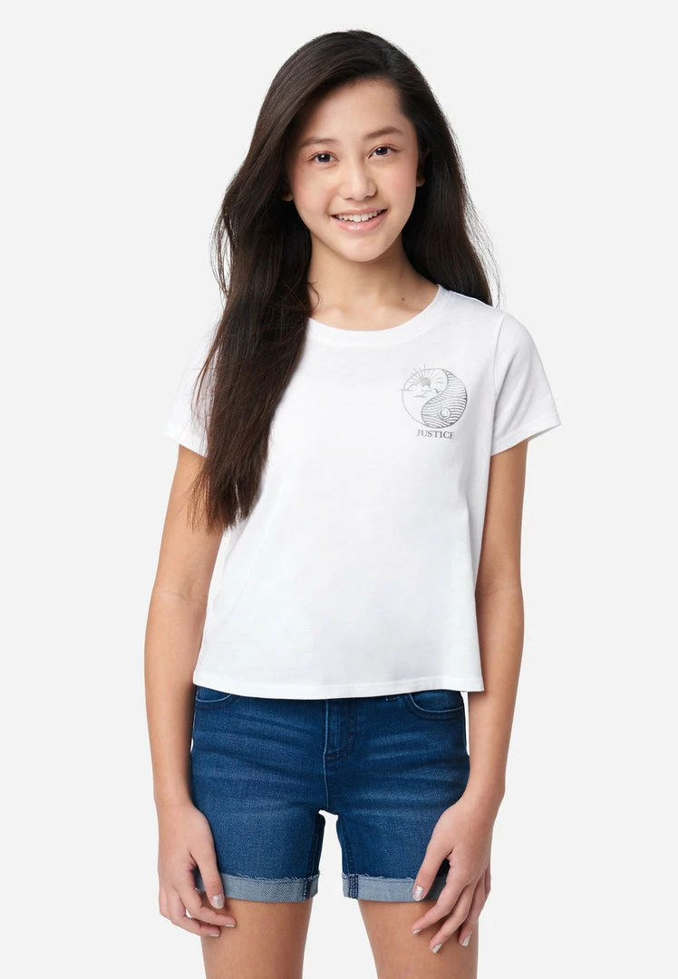 She’ll love the super-soft feel of our girls’ cotton-jersey tee made with recycled materials. Which means not only will your girl look good, but she’ll feel good about showing Mother Nature some love, too. We made them with a classic crew neckline. Cool graphics punctuate the front and back. The cropped design and relaxed cut make them easy to style. To complete her look, your girl can style it with a pair of leggings from our Everyday Faves collection—which offers tons of value and is perfect for a girl who’s just discovering her own, unique personal style.