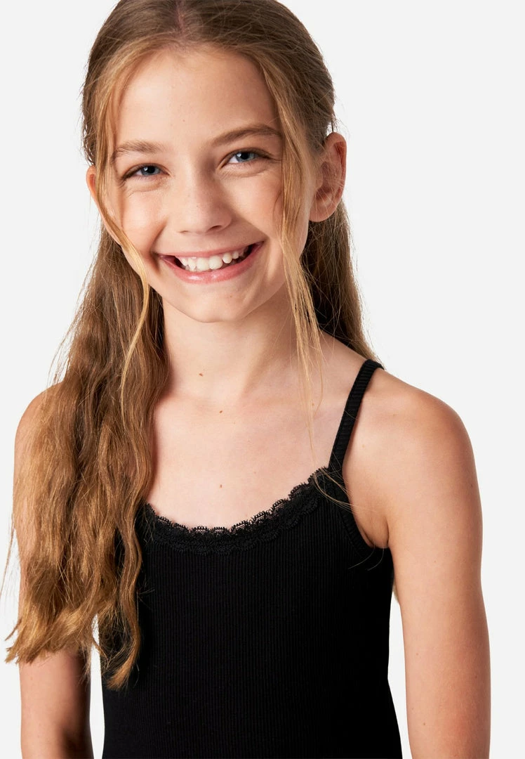 Dainty lace highlights the scoop neckline on our classic girls’ tanks. Bias binding finishes the adjustable spaghetti straps and armholes. And the cotton-blend fabric promises daylong comfort. They’re available in an array of easy-to-pair hues that are perfect layering under tops or mixing and matching. Plus, they’re made with recycled materials. This means not only will your girl look good while wearing her fashion, but she’ll feel good about her fashion, too.