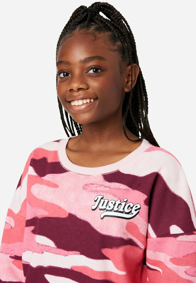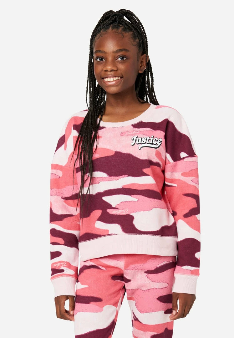 Cotton-blend fleece fabric gives our girls’ sweatshirts a cozy finish. Color blocking highlights the crew neckline, banded cuffs, and cropped hemline. An allover pattern offers standout style. And a graphic punctuates the front. She can style them easy-to-pair pieces from our Everyday Faves collection—which offers tons of value and is perfect for a girl who’s just discovering her own, unique personal style.