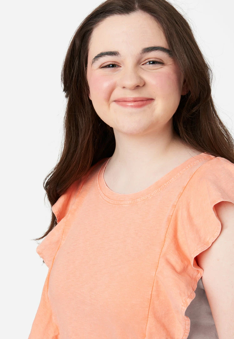 Break your girl out of her everyday style habits with our girls’ top. It’s crafted from soft cotton that keeps it super comfy. The crew neckline offers classic appeal. Ruffles along the sides give it a cap-sleeve effect. And the smocked hemline lends a cropped-look that’s sure to stay in place.