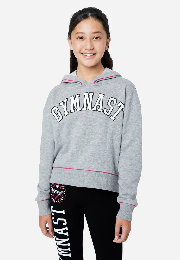 Your all-star will love our girls’ hoodies that feature bold sports graphics on the front and back. Cotton-blend fabric gives them a cozy finish. Color-block piping traces the hoodie, banded cuffs, and hemline. The pullover design promises easy layering.  Plus, she can rep her sport by pairing her hoodie with a matching tee and leggings.