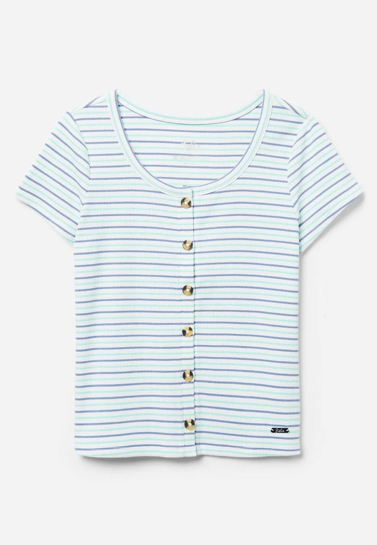 A scoop neckline, short sleeves, and horizontal stripes offer classic style to our girls’ tops. Wood-inspired buttons add natural texture to the front. The cotton-blend fabric promises daylong comfort. Ribbing brings playful texture. And a matching hair tie is perfect for upgrading her updos.