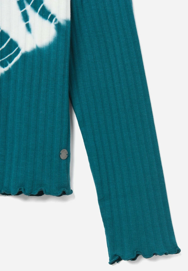 Our girls’ tops feature a mock neckline that adds extra comfort. The pure-cotton fabric is breathable—which makes it the perfect transition top for cool mornings that turn into warm afternoons. Ribbing and wavy lettuce stitching at the hemline and cuffs bring playful texture to the tops. And a tie-dye design is splashed across the body for visual interest. It’s a perfect match for Justice Denim jeans.