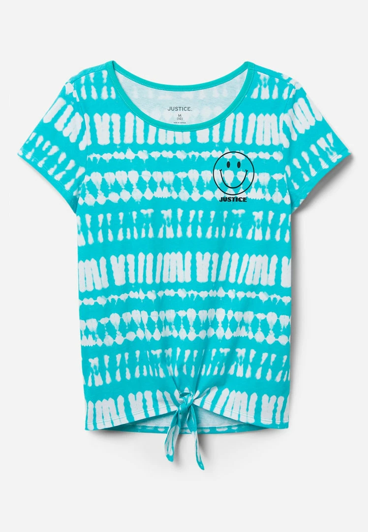 Bias binding traces the scoop neckline of our girls’ short sleeve tops. A graphic with positive sentiments adorns the front. A tie-dye pattern brings on-trend appeal. They tie at the front hemline. They’re designed in a lightweight cotton-blend fabric that promises the comfiest wear, ever. Plus, they’re available in an array of easy-to-pair hues that are perfect for mixing and matching with leggings, shorts, and other essentials in our Everyday Faves collection—which offers tons of value and is perfect for a girl who’s just discovering her own, unique personal style.