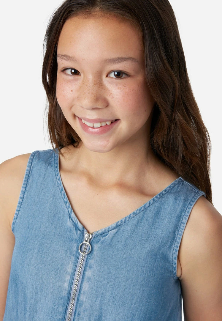 We designed our girls’ romper from lightweight, breathable fabric that’s supersoft to the touch for extra comfort. This sleeveless one-piece has a V-neckline, so your girl can stack on her favorite necklaces. A tie-waistline, with belt loops, gives it a blouson effect. And a zip-front closure keeps it secure. Add a Justice mini bag to her shoulder to complete the look.