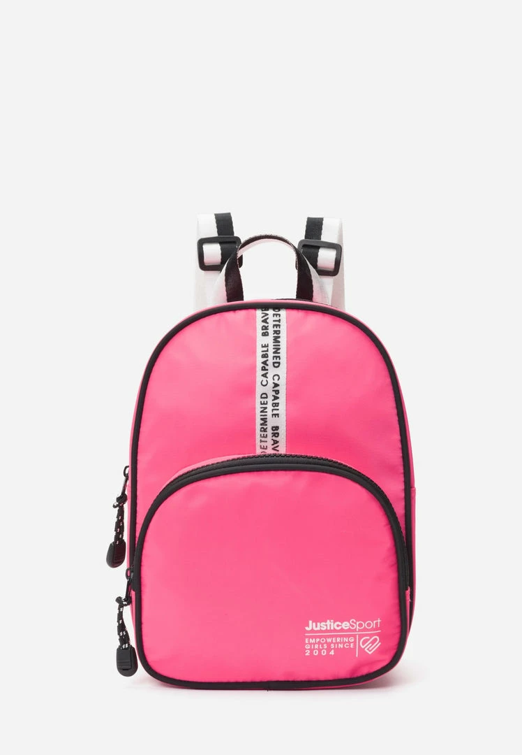 Our girls’ backpacks are just right for your on-the-go girl. A front zipper pocket keeps smaller, more important essentials organized. The larger zipper panel secures her other items. A top handle and two adjustable straps offer comfy, hands-free carrying—plus they’re color blocked for extra panache. The bold hue gives her standout style—especially when you’re trying to spot her in the after-school crowd. Plus, logo taping boasts positive sentiments to encourage her along the way.