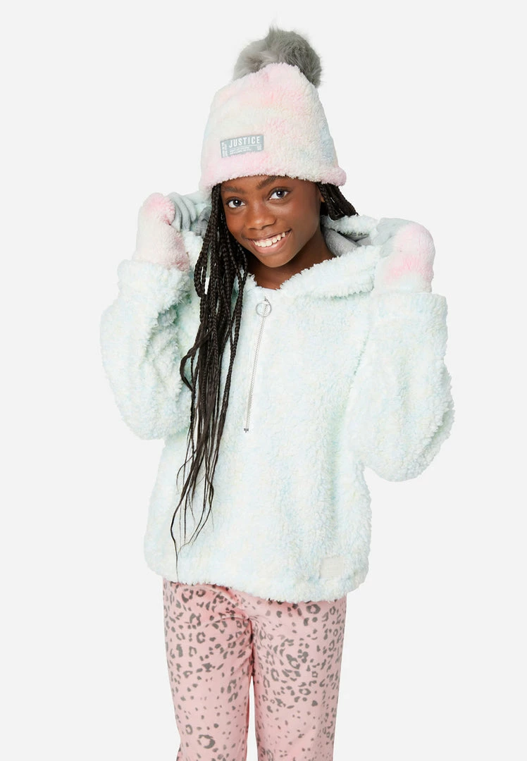 As the temperatures are dropping, our girl’s hats and girl’s gloves are perfect for making snow angels and having snowball fights. We created them in ultrasoft, super-cozy Sherpa with a bright, allover pattern. A fuzzy pom-pom sits atop the hat—which features a logo patch. And the matching gloves have a color block design and logo patch, too.
