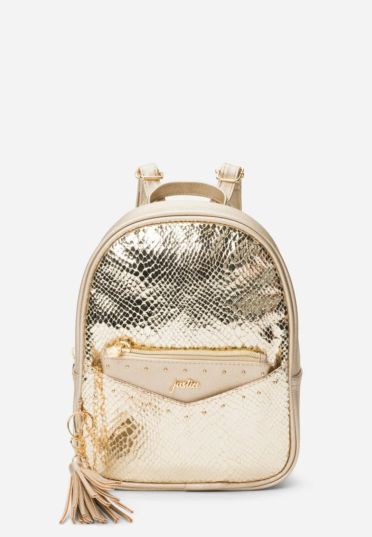 Our girls’ backpacks are just right for your on-the-go girl. Shiny studs highlight the front. The bold, allover metallic design gives her standout style—especially when you’re trying to spot her in the after-school crowd. A detachable zip pouch—perfect for storing pencils and pens—slips into the front slip pocket. A tassel keychain unzips the panel, which is perfect for securing her larger items. Plus, the top handle and two adjustable straps offer comfy, hands-free carrying.