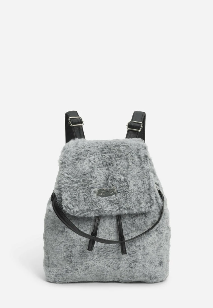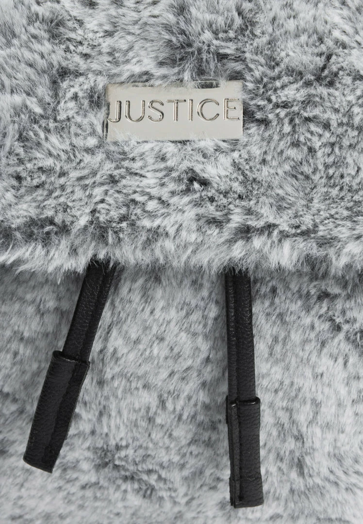 Our girls’ mini backpack is just right for your on-the-go girl. We designed it in plush, season-perfect faux fur. A Justice logo plate highlights the front. The drawstring closure secures her items. It has a top handle, and two adjustable straps offer comfy, hands-free carrying.
