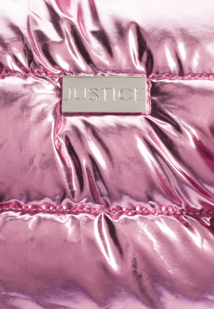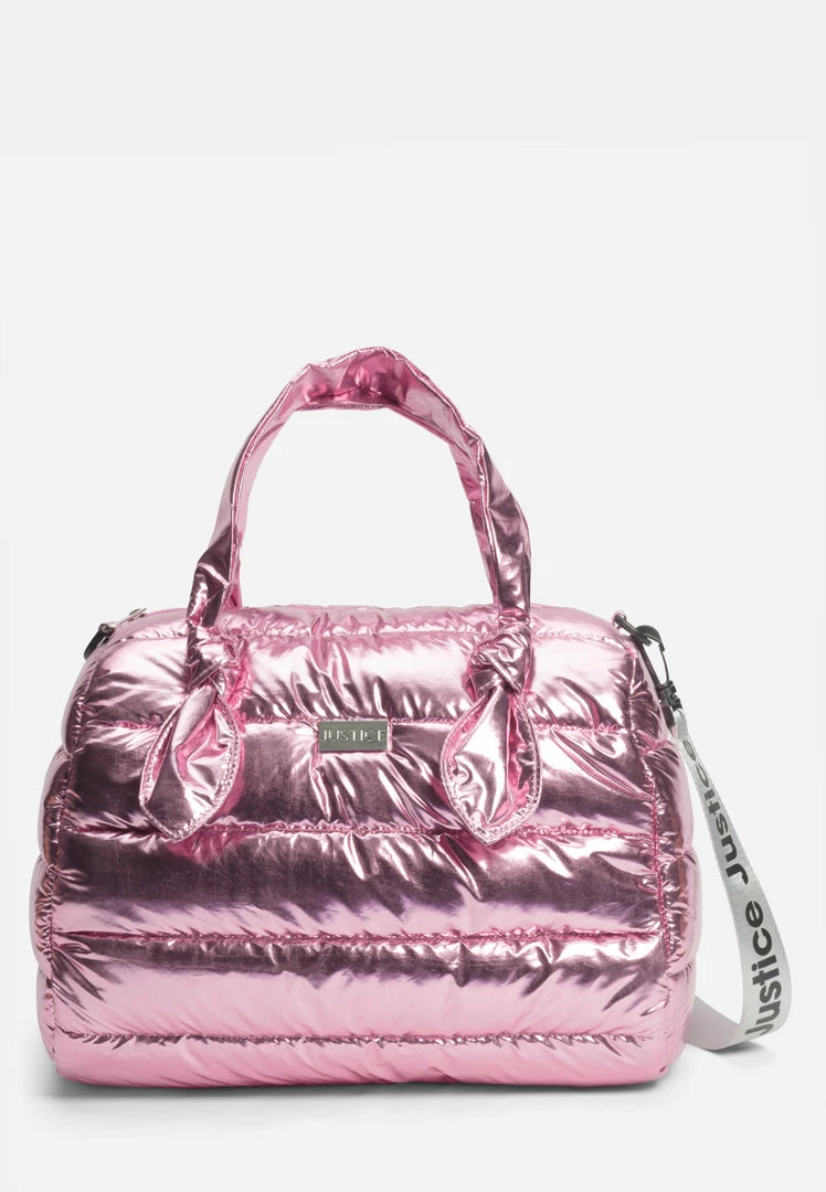 Our girl’s duffle bag is just right for your on-the-go girl. It has allover quilting, and a small plate punctuates the front. The zip top keeps her items secure. Two top handles make for easy toting. A removable crossbody strap, designed with color-block Justice logos, lends hands-free carrying. And the voluminous interior offers ample space to pack a change of clothes, PJs, and all her sleepover must-haves.