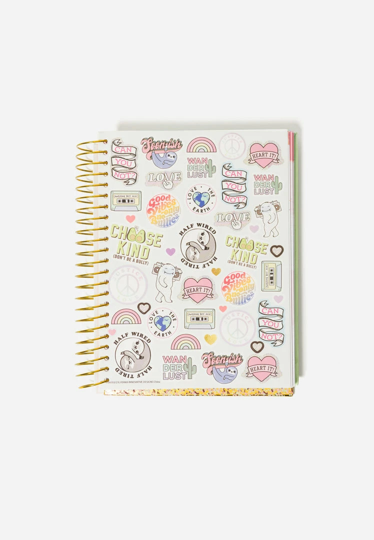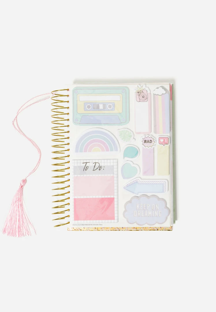 Our girls’ planner is perfect for journaling and setting goals. It has an elastic bungee cord that keeps it closed. She can use stickers to notate special dates she’s looking forward to. Plus, it comes with a matching bookmark.