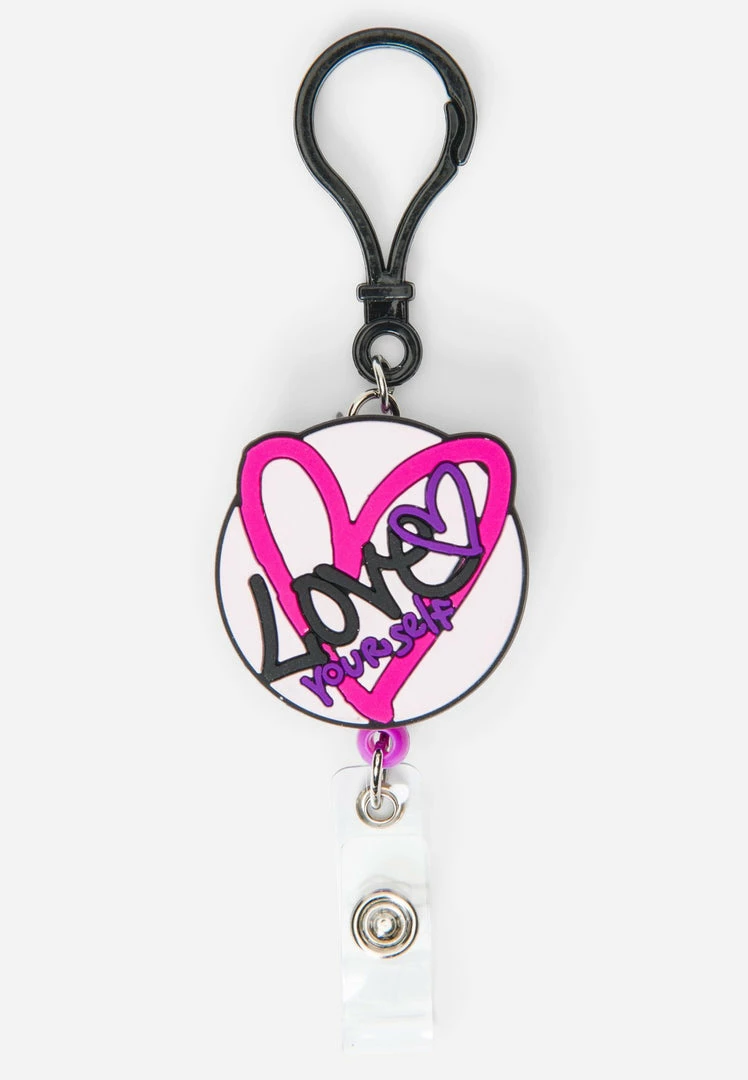 No more worrying about misplacing her school ID. Our girl’s badge reels are perfect for keeping it on hand. A clip easily slips onto her belt loop and a snap secures her ID. A retractable cord makes it easy to swipe into keyless-entry doors. Plus, it has a cool message on the front and a glittery backdrop.