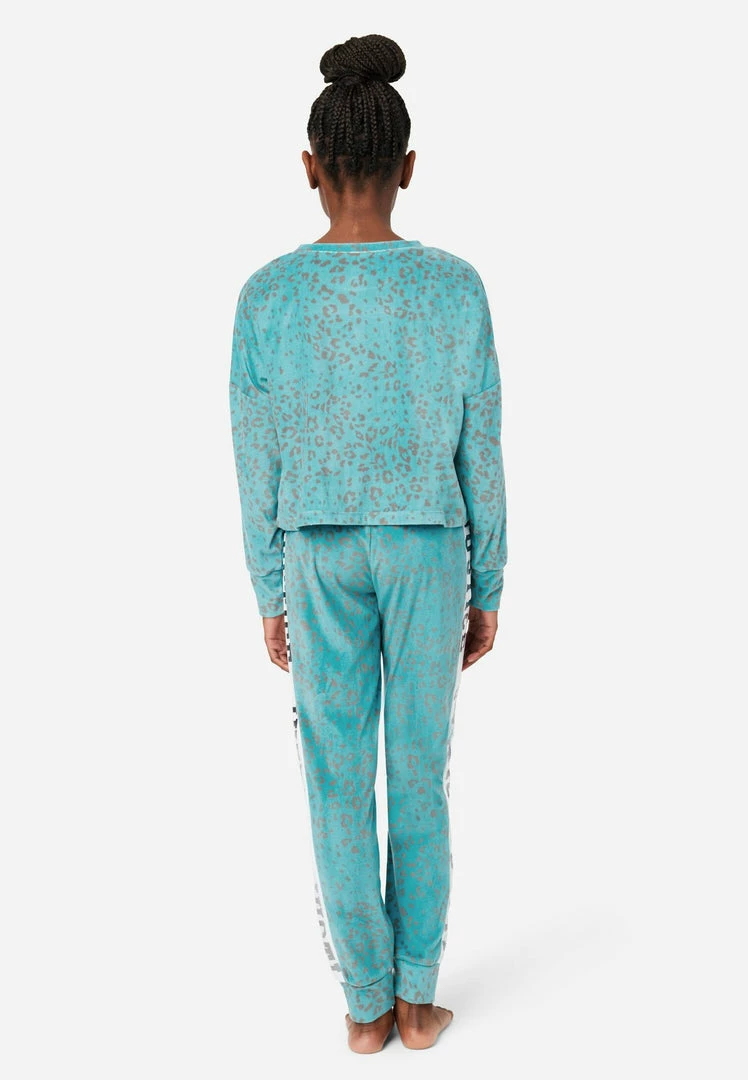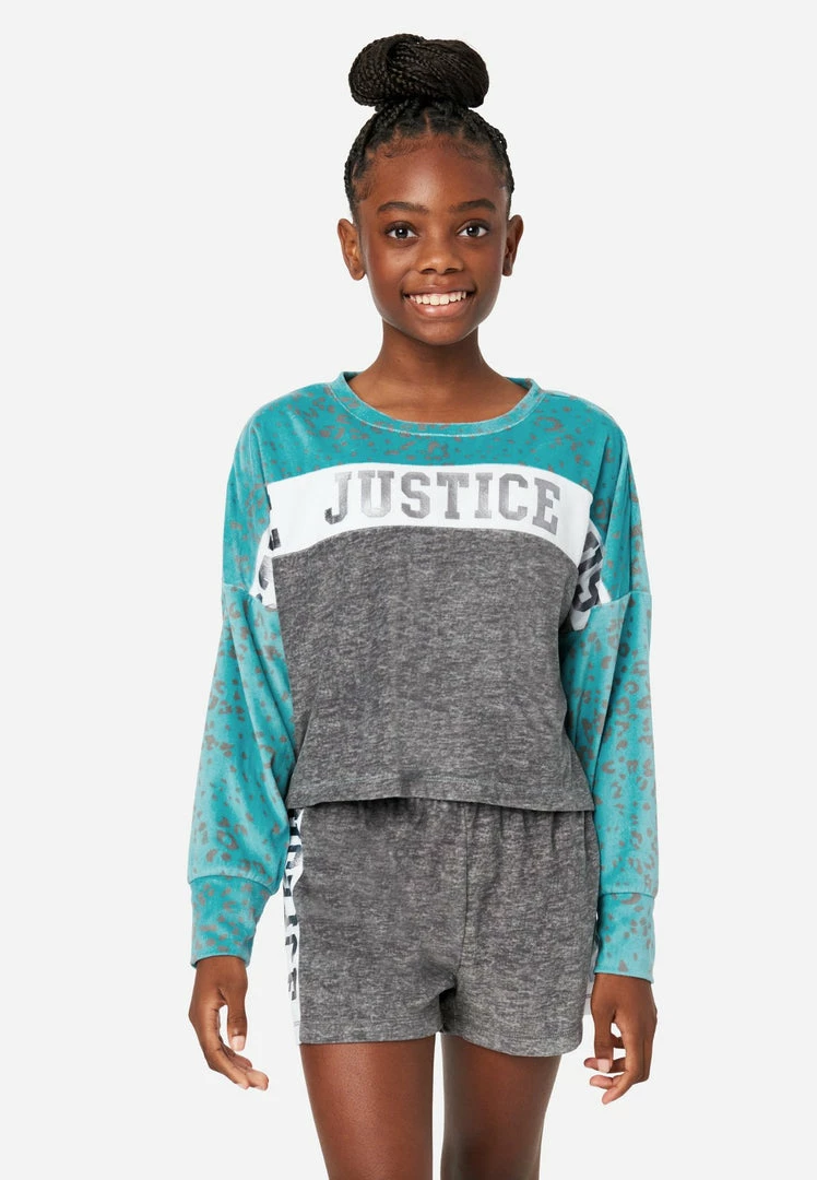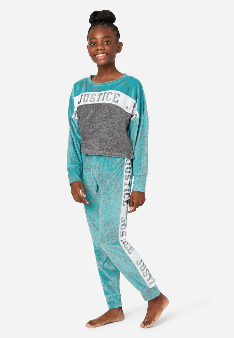 We designed our girls’ pajama sets with super-soft fleece fabric that promises a cozy feel. The set comes with shorts and pants for versatile wear on cool and warm nights. The top has a crew neckline. Shining graphics highlight the front of the top—plus they run along the sides of the shorts and pants. The shorts and pants both have pull-on waistbands that are super stretchy—for on-and-off convenience. And the color block design has juxtaposed textures for fun pattern play. Â