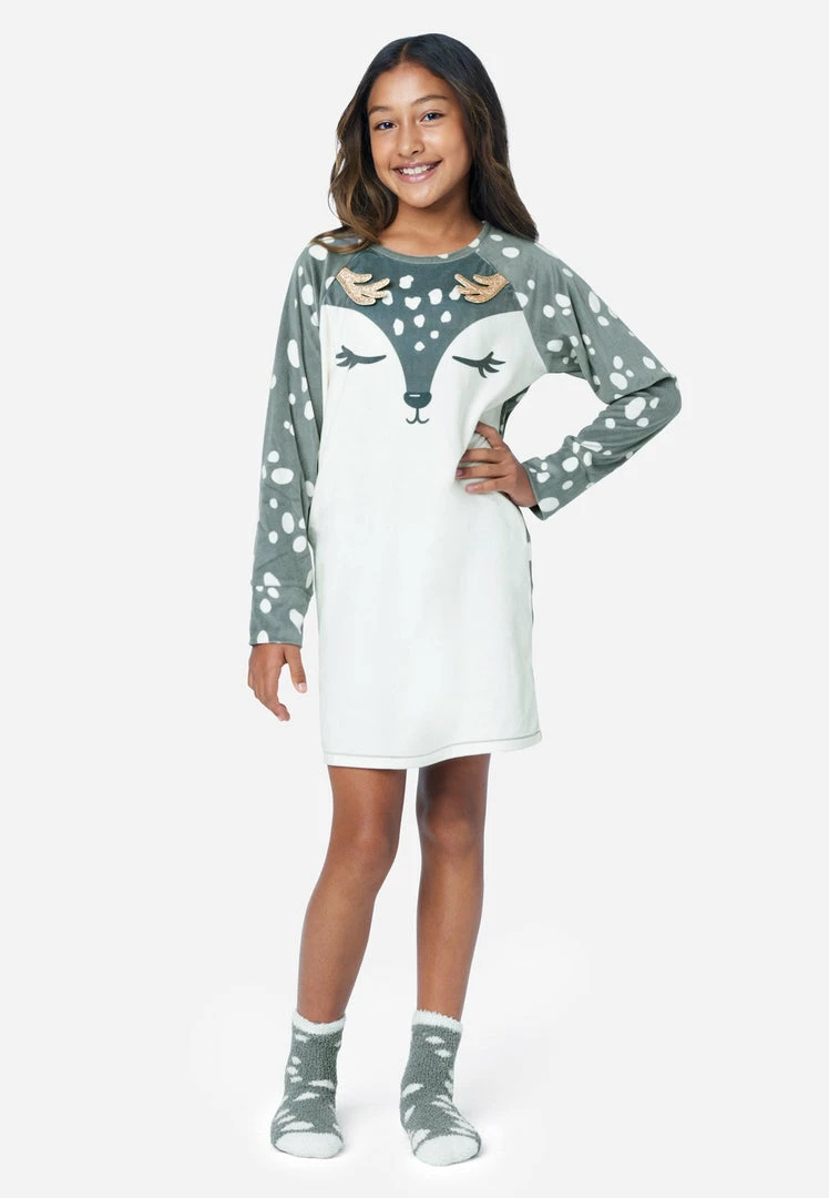 We designed our girl’s sleep shirt with super-soft fabric that promises a cozy feel. A sweet critter design gives it a playful vibe. And the long sleeves make it comfy for cool nights.