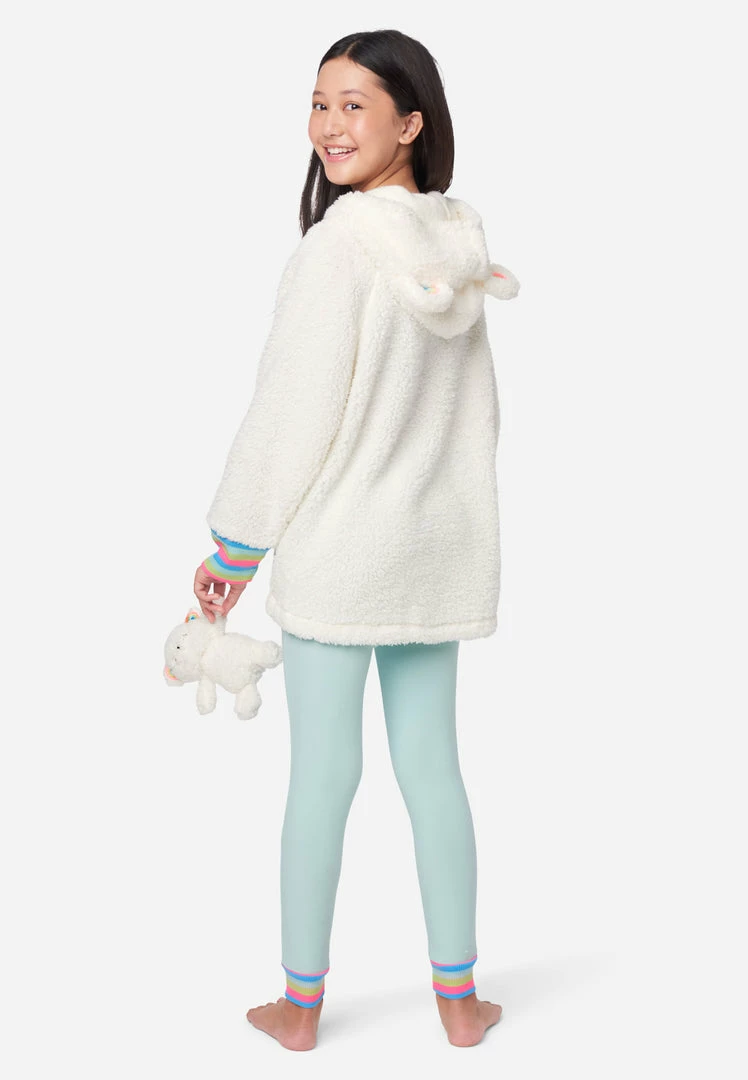 We designed our girl’s pajama set with ultrasoft faux sherpa that promises a cozy feel. Animal ears adorn the hood. The top has a cool color block design. Banded cuffs update the pants with a jogger style. And they have a pull-on waistband that’s super stretchy—for on-and-off convenience. Plus, a sweet stuffed animal is perfect for snuggling on cool nights. They’re the perfect gift, and you can only find them at ShopJustice.com!