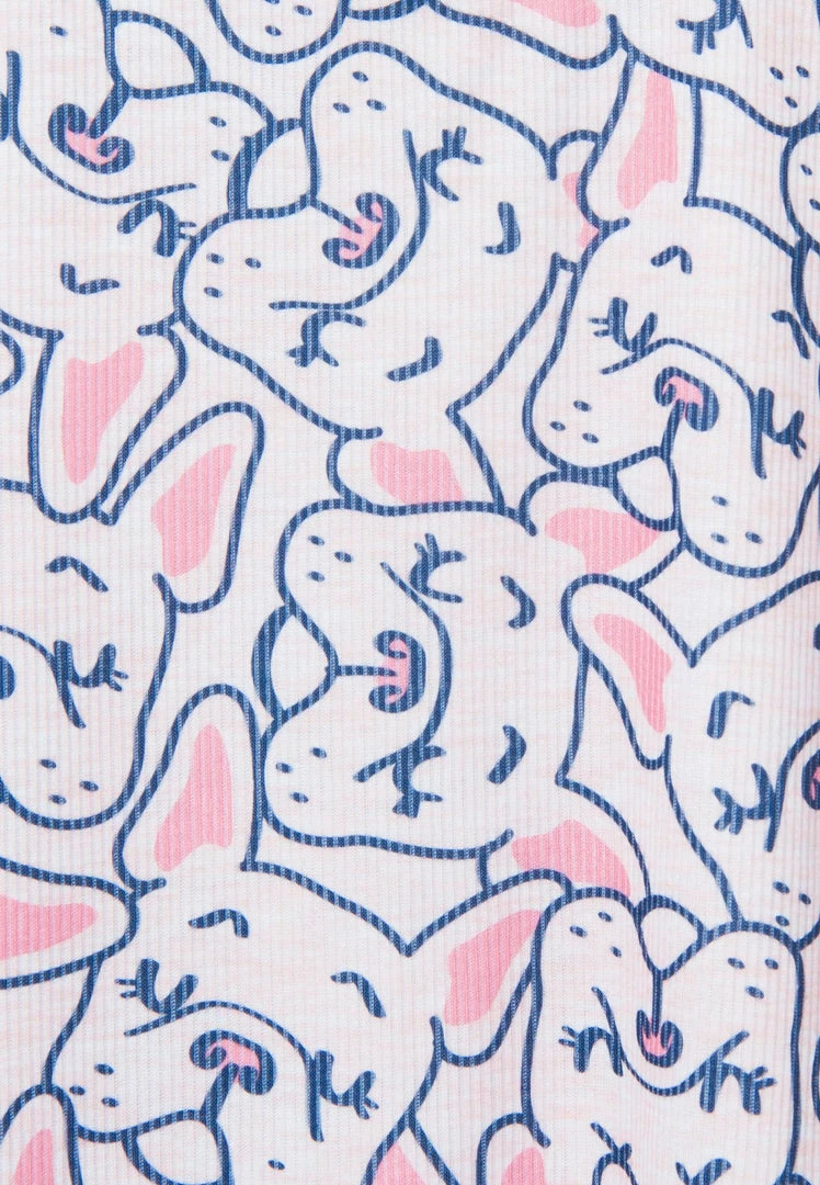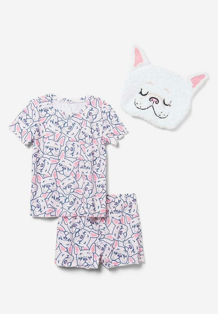 We designed our girls’ pajama sets with super-soft fabric that promises a cozy feel. Ribbing, and wavy lettuce stitching at the hemlines bring playful texture. Bias binding finishes the crew neckline. Short sleeves and shorts make it perfect for warmer nights. The pull-on waistband is super stretchy. And an allover doggie pattern matches the squishy pillow that’s perfect for snuggling.