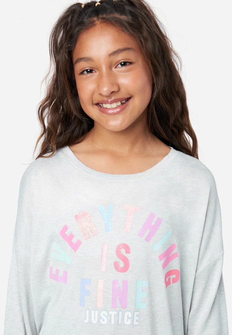 We designed our girl’s pajama set with ultrasoft and breathable fleece fabric that promises a cozy feel. The set has a fun design with Justice branding in a bright blue color. And they have a pull-on waistband that’s super stretchy—for on-and-off convenience. They’re the perfect gift, and you can only find them at ShopJustice.com!