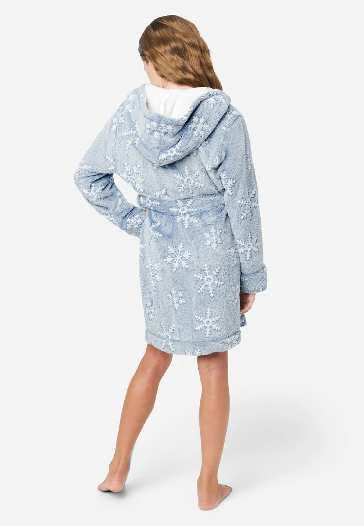 We designed our girl’s robe with ultrasoft plush fabric that promises a cozy feel. The hood offers extra warmth. It has a removable belt that ties at the waist for secure wear. And an allover pattern brings standout style. She can use it after bathing or layer it over PJs for an extra-snuggly vibe. It’s the perfect gift, and you can only find it at ShopJustice.com!