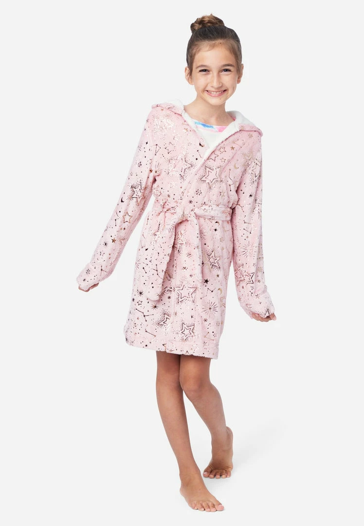 We designed our girl’s robe with ultrasoft plush fabric that promises a cozy feel. The hood offers extra warmth. It has a removable belt that ties at the waist for secure wear. And an allover pattern brings standout style. She can use it after bathing or layer it over PJs for an extra-snuggly vibe. It’s the perfect gift, and you can only find it at ShopJustice.com!