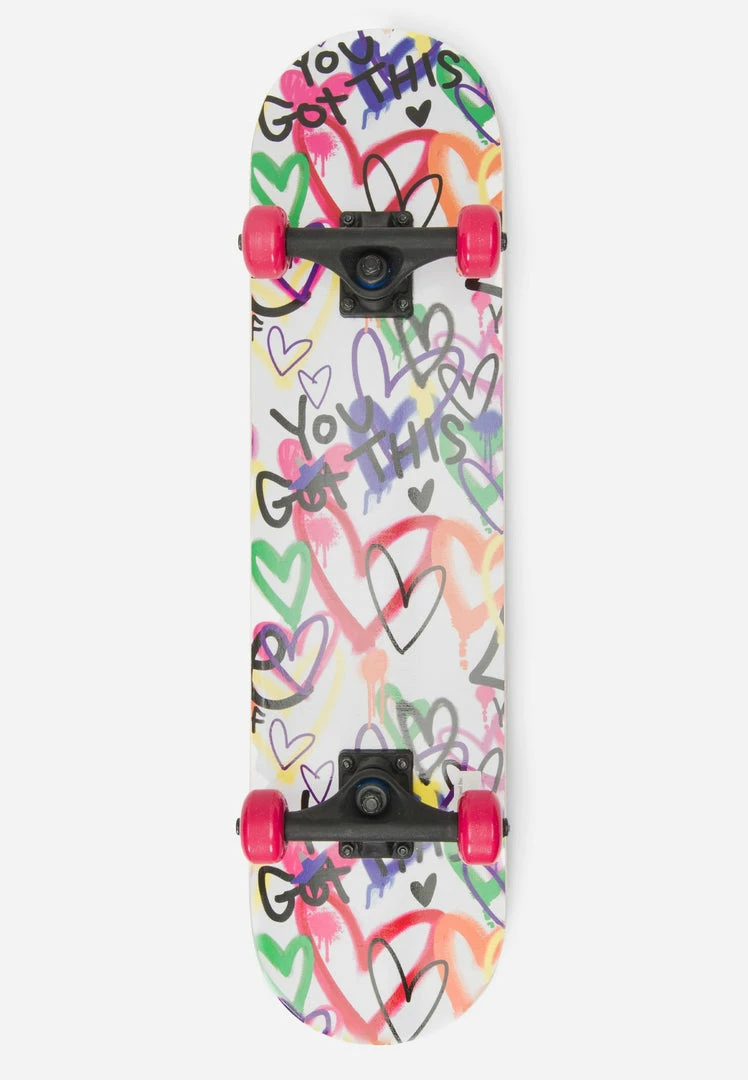 Our girl’s skateboards are perfect for girls who are looking to join the skate park. They’re designed specifically for girls, with a 31-inch length that will allow control of movement. They have double kicktails that are perfect for doing pivots and tricks. Plus, the cool design will keep your girl in style as she cruises the ramps.