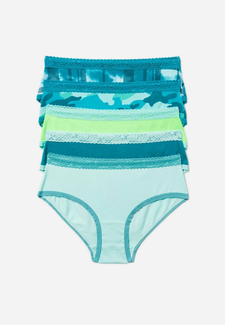 Our girls’ undies are a subtle first layer for confidently styling her looks. They lend full coverage. We designed them with a cool color-block design, and a bold graphic graces the back. The stretchy waistband promises a secure fit—plus it has a dainty lace overlay. The super-soft fabric gives them an oh-so-cozy feel. Plus, this set has an array of bright hues and patterns she’ll love matching with her outfits.