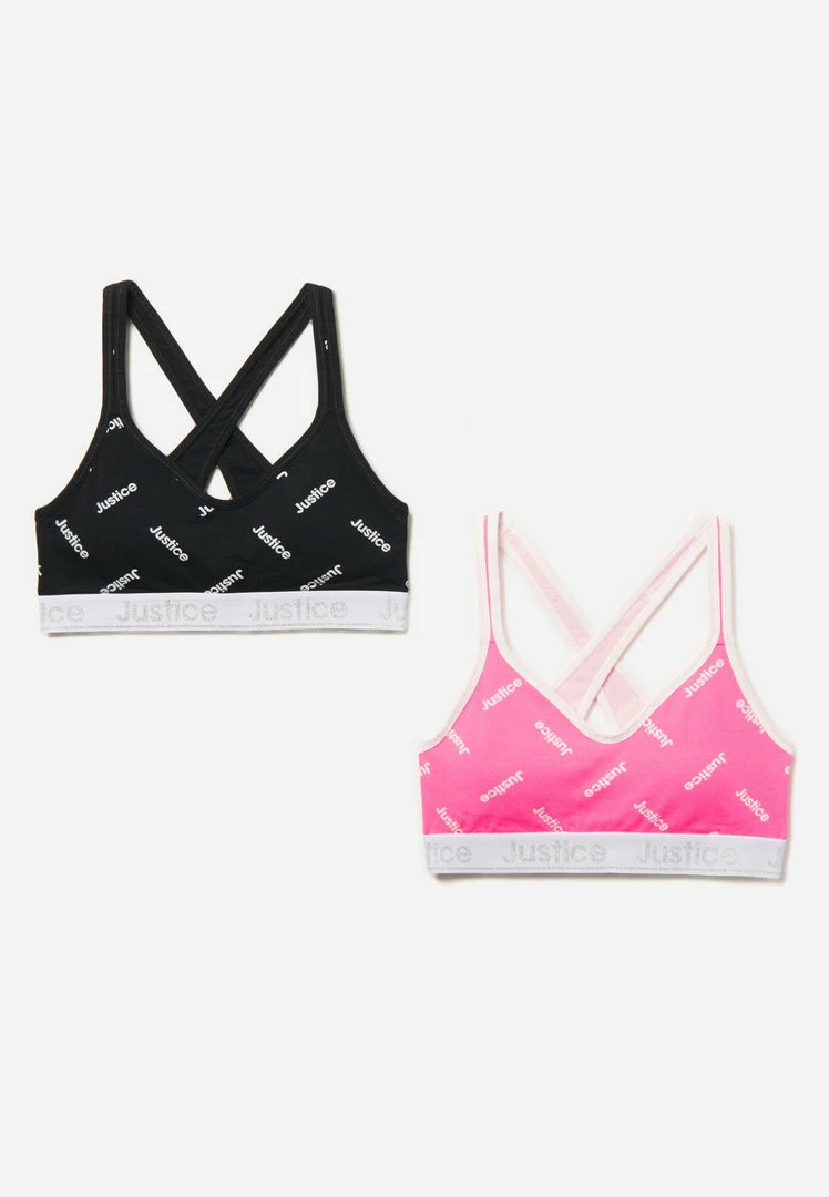 Our girls’ bras are a subtle first layer for confidently styling her looks. They have classic scoop necklines which create a form-fitting shape. The sleek bands are made of Justice logo elastic. The wide, crisscross straps promise a secure fit. They’re wireless with a ton of stretch—which promises comfy wear. An allover pattern offers standout style. Plus, she can match them with shortie undies in our Oh So Soft collection.
